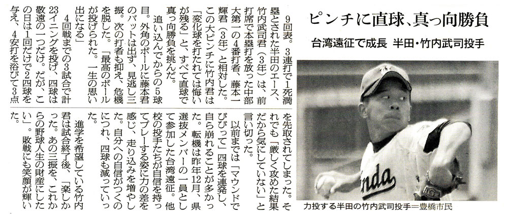 半田高 竹内 武司投手